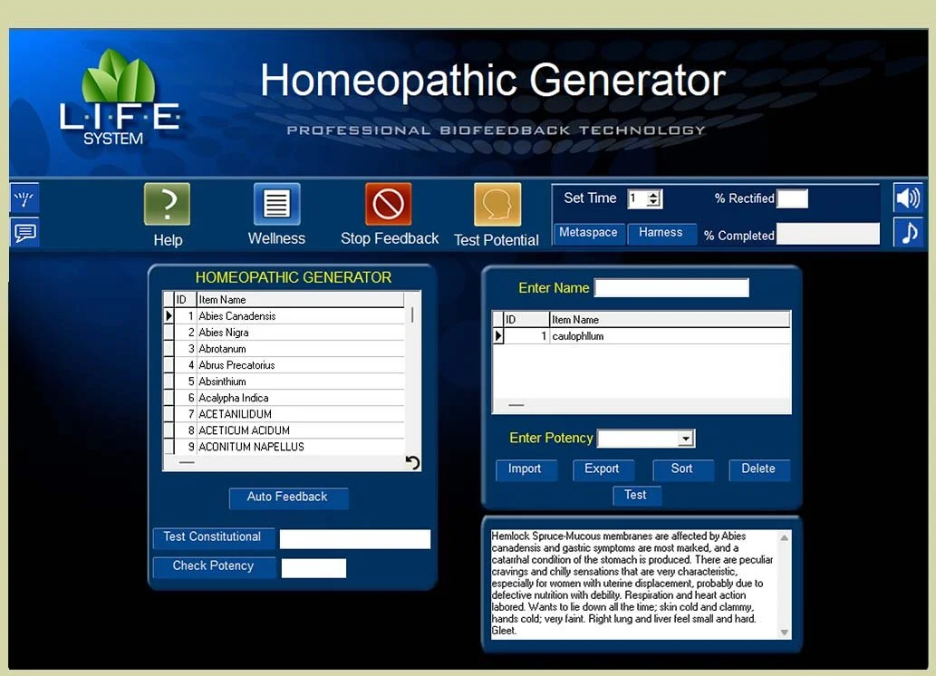- The L.I.F.E. System tests your body’s response to over 600 homeopathic remedies—from well-known options such as Arnica, Belladonna, Arsenicum Album, Natrum Muriaticum, Apis, Sepia and Lachesis.